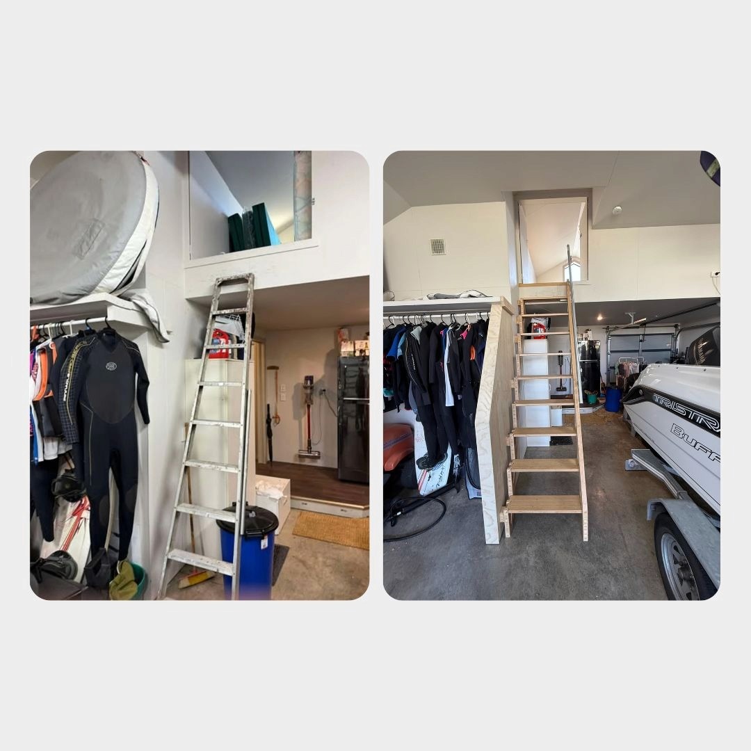 Garages and workshops: reach a storage loft without permanently blocking bays or benches.