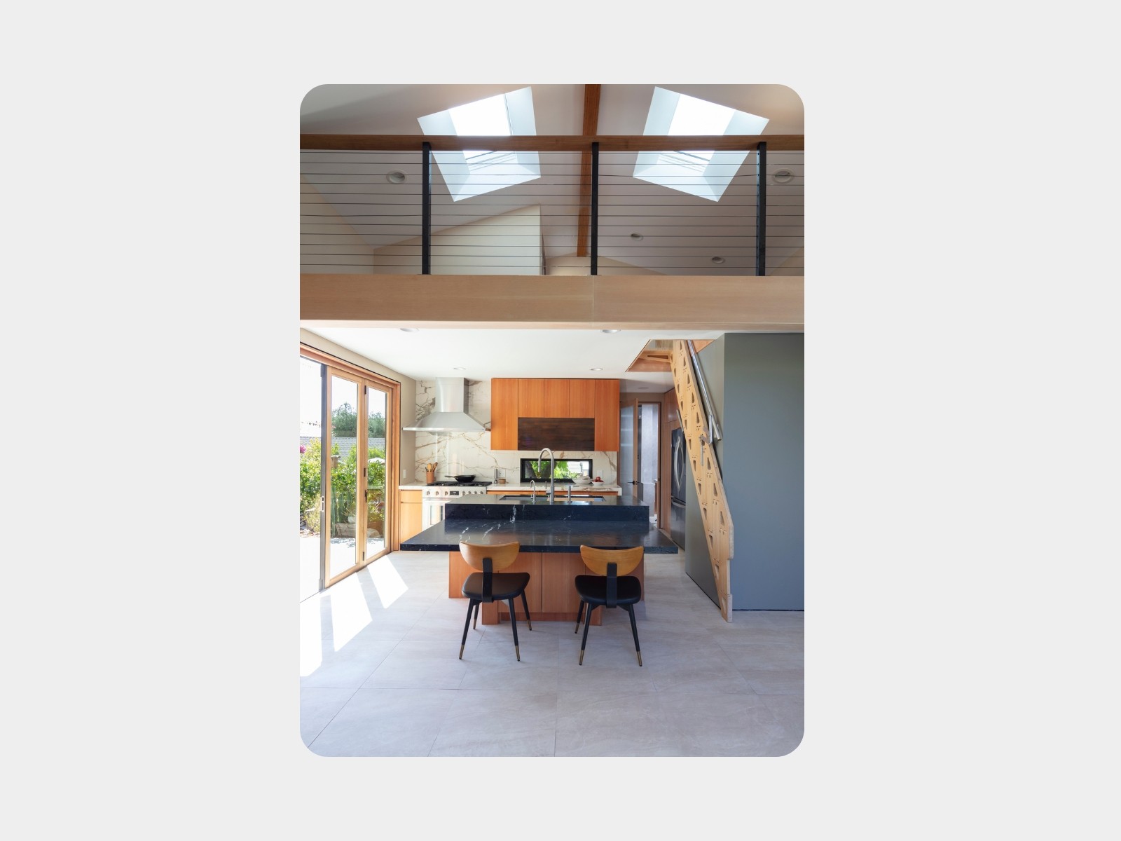In this project, the homeowners wanted to incorporate a loft space above their kitchen without compromising the openness of the room.