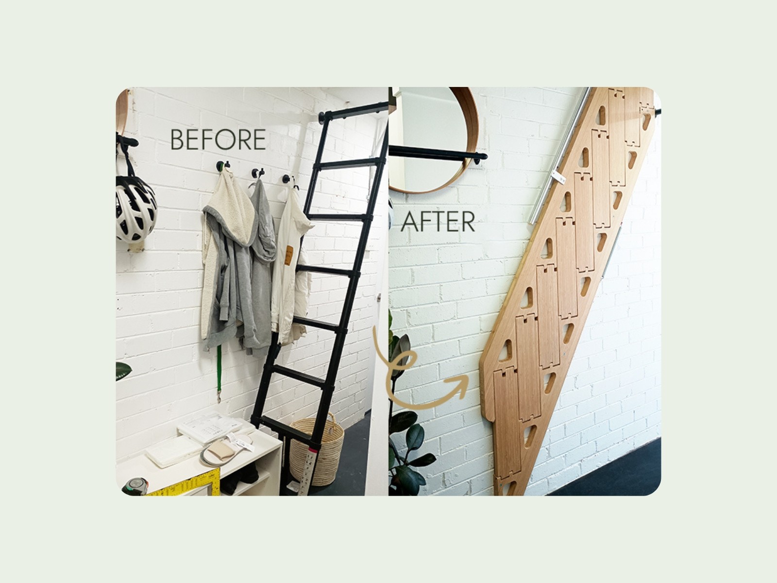 Some homes call for a more tailored solution, whether that is because of layout, design expectations, or the desire for a more refined architectural finish. For those more discerning clients, Bcompact still offers custom stairs and ladders that combine premium materials, beautiful space-saving design, and a more bespoke approach.