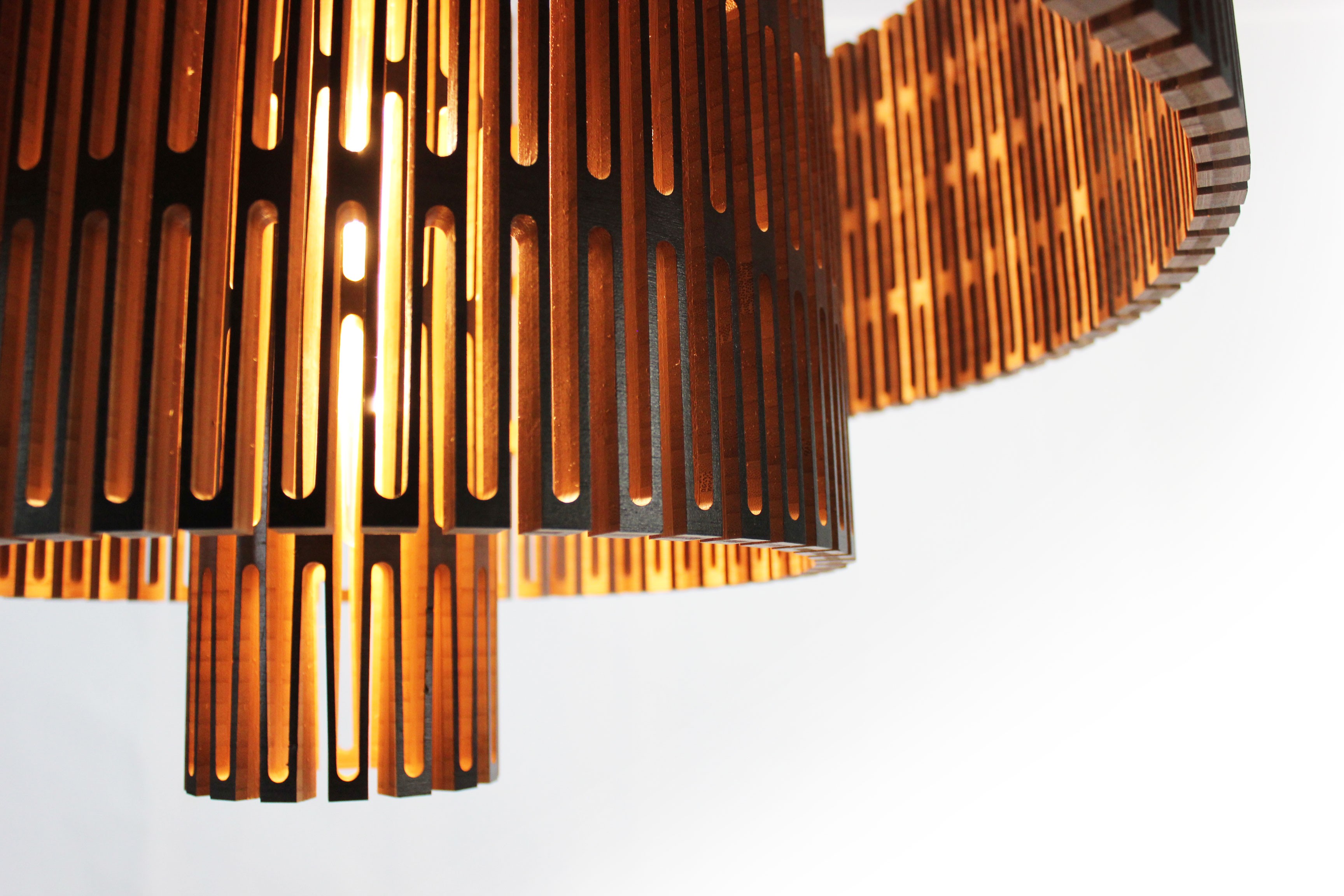 Crafted from responsibly sourced bamboo, each Chandelier is a work of art in its own right. The bamboo's natural grain and texture are accentuated by intricate kerf patterns, creating a mesmerizing interplay of light and shadow that transforms any room into a sanctuary of style and serenity.